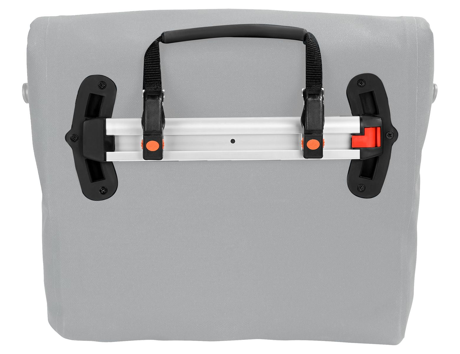 Die Tasche wird mit der Befestigungsschiene Plug und Ride aus dem Gepäckträger montiert und entfernt. Die Operation erfolgt schnell und einfach von Hand.
