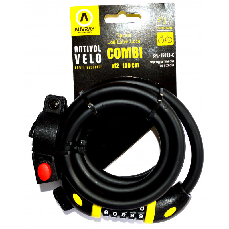 Antivol spiral à code Auvray Combi D12 150 cm
