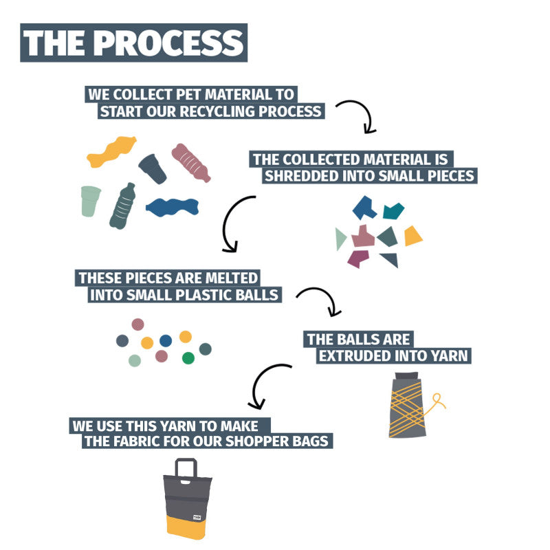 - Fabriqué à partir de polytéréphtalate d'éthylène recyclé, (parfois appelé à tort polyéthylène téréphtalate), ou plus communément dénommé plastique de bouteille