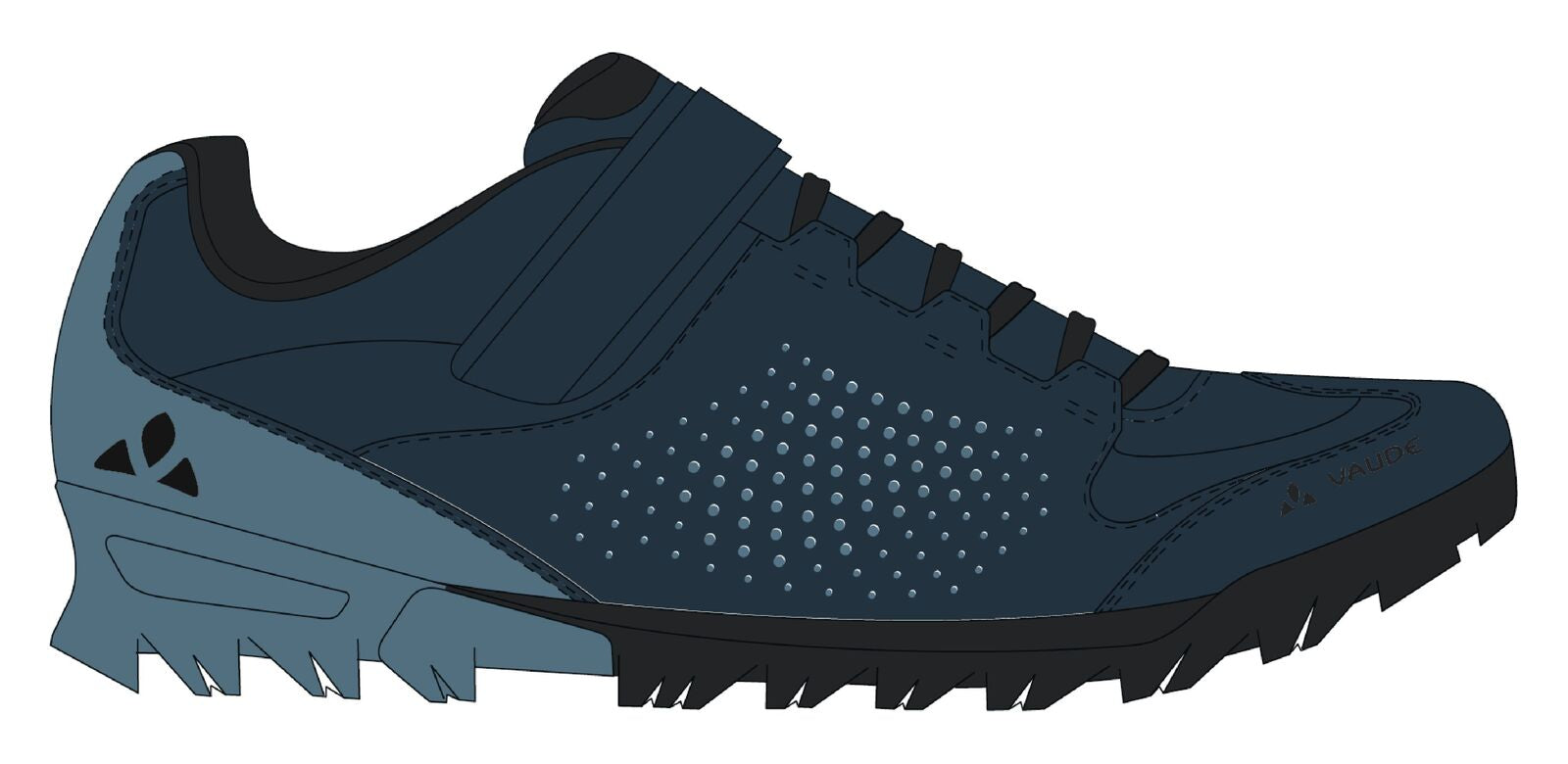 Construite avec un upper en mesh respirant et des renforts synthétiques durables, cette paire de Vaude offre une excellente ventilation tout en protégeant vos pieds des éléments. La semelle rigide en nylon est optimisée pour une transmission efficace de la puissance lors du pédalage, tandis que l'empeigne présente un système de laçage ajustable pour un maintien personnalisé. Ces chaussures sont adaptées aux usages tout-terrain comme le VTT ou les randonnées gravel, avec une compatibilité pour les pédales à clips comme le SPD, et un design qui intègre des éléments antidérapants pour une adhérence supérieure sur les terrains boueux ou rocailleux.