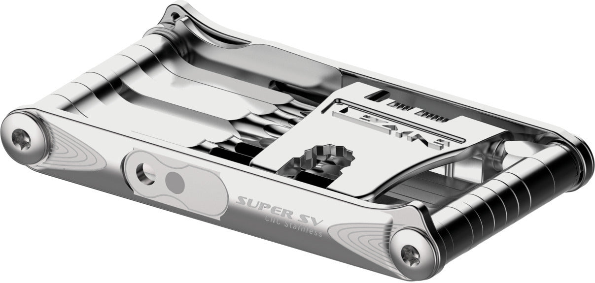 La gamme de multi-outils pour vélo Lezyne Super SV offre des outils ultra-polyvalents conçus pour les cyclistes exigeants. Fabriqués avec des matériaux haut de gamme, alliant acier inoxydable et aluminium, ces multi-outils robustes et compacts intègrent des fonctionnalités essentielles pour la maintenance de votre vélo, que ce soit sur route, gravel ou en tout-terrain. Avec des ajouts spécifiques comme un outil de réparation pour pneus tubeless dans la version SV23, cette gamme est idéale pour les cyclistes modernes.