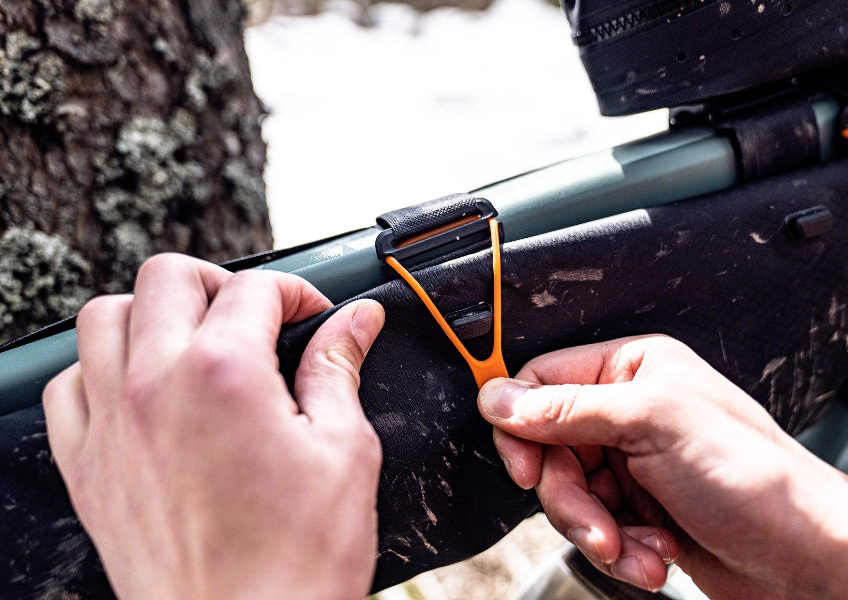 La sacoche viendra sur fixer solidement sous le tube supérieur de votre vélo, sa forme fine et allongée laissera l'accès libre à vos gourdes / portes gourdes. Cet emplacement central et bas n'influera pas sur votre conduite et le volume de 3 ou 4L sera idéal pour emporter piquets de tente, outils ou nutrition.